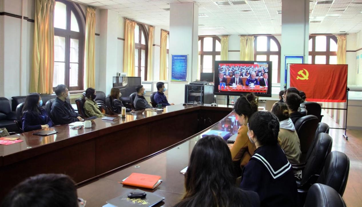 党员干部和全院师生以高昂的精神风貌和饱满的热情,收看开幕会盛况。学院党委理论学习中心组成员、各党支部书记、新发展的学生党员在钟楼103室围坐在一起,集中收看大会报告,各党支部党员通过电视、网络直播等形式,采用集体观看和个人自主观看的方式,第一时间学习领会大会精神。