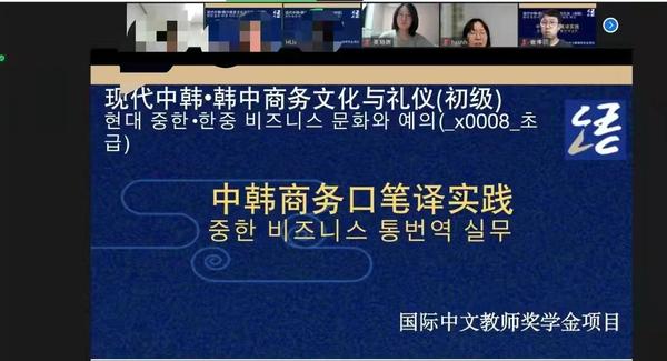 该项目主要目标生源国别为韩国,分为《现代中韩•韩中商务文化与礼仪(初阶)------中译韩商务口笔译实践》和《现代中韩•韩中商务文化与礼仪(高阶)------韩译中商务口笔译实践》两个阶段。目前,第一阶段已顺利结课;第二阶段《现代中韩•韩中商务文化与礼仪(高阶)------韩译中商务口笔译实践》正在进行中,预计2023年初结课。